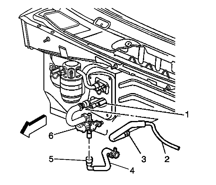 3. Position the outlet heater hose clamp (6) at the outlet hose fitting using J 38185.