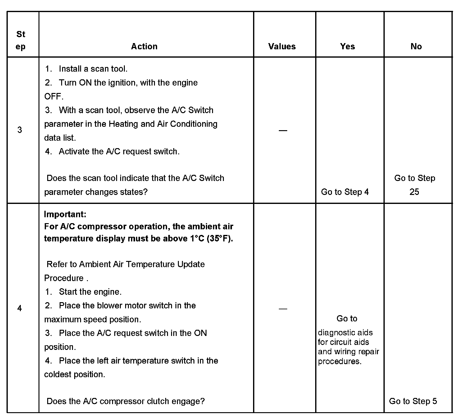 3. This step ensures that the HVAC control module is receiving an input from the A/C switch.