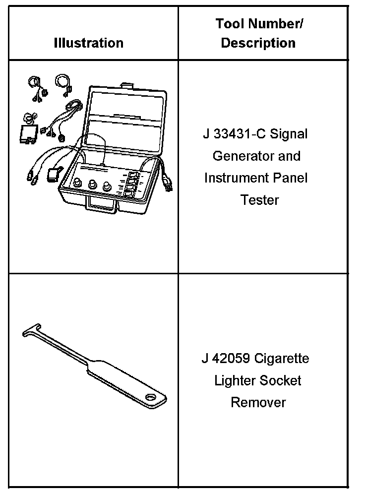 Instrument Panel, Gauges and Warning Indicators: Tools and Equipment