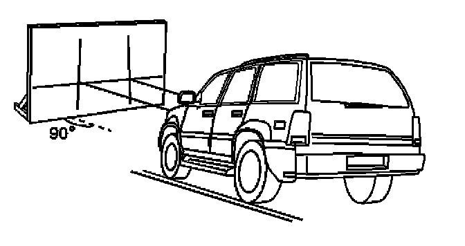 1. Align the left tires of the vehicle with the reference line extending from the screen with the headlamps aligned with the reference line.