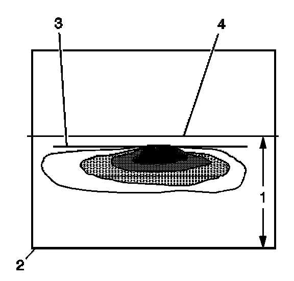 - The edge of the headlamp pattern (3), must be 5 cm (2 in) below the reference mark (4), with the vehicle 7.62 m (25 ft) away.