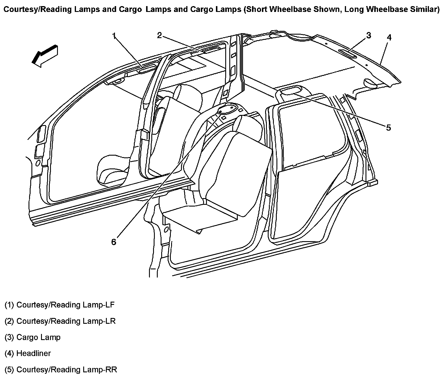Courtesy/Reading Lamps and Cargo Lamps (Short Wheelbase Shown, Long Wheelbase Similar):