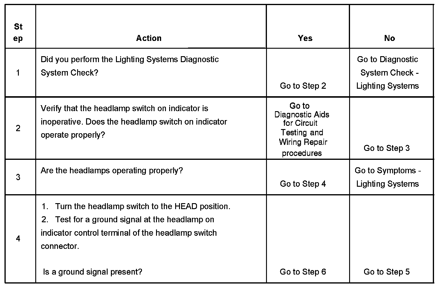 Headlamp Switch On Indicator Inoperative