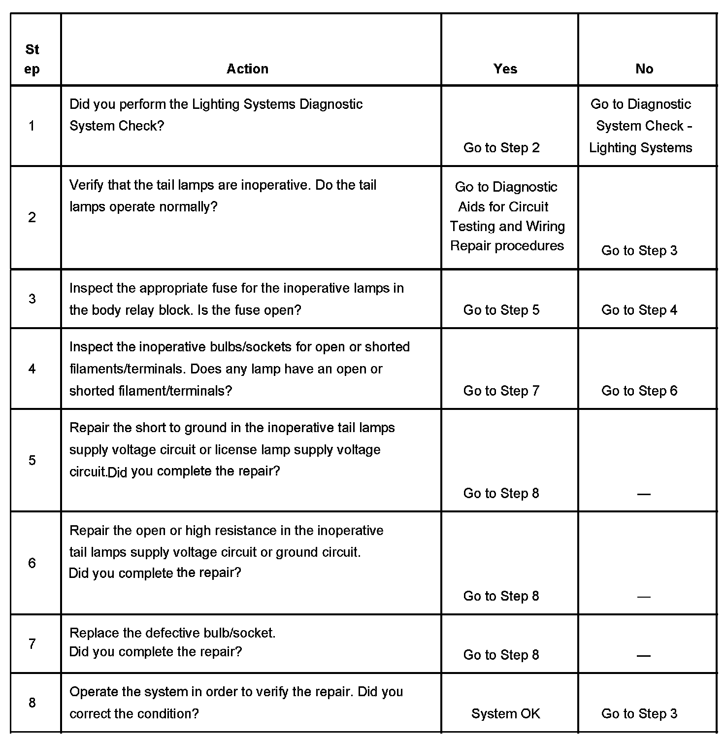Tail Lamps Inoperative