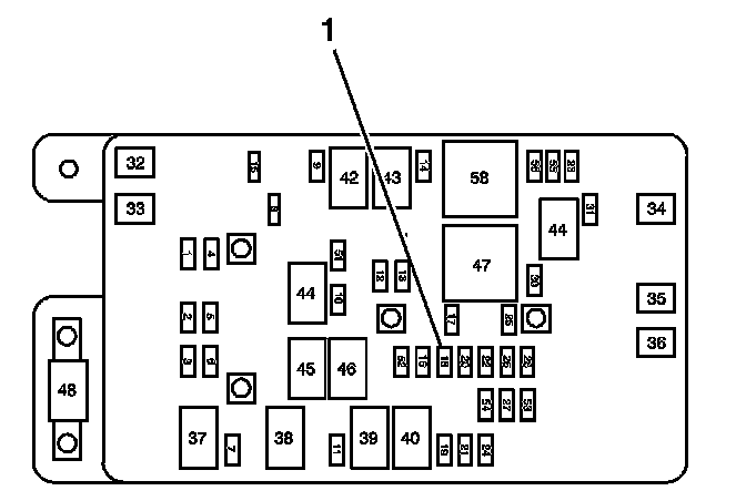 5. Install the SIR fuse to the fuse block (1) located in the underhood fuse block.