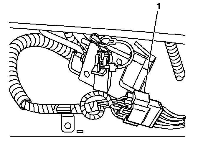 3. Install the CPA (1) to the steering wheel module yellow 4-way connector located left of the steering column near the knee bolster.