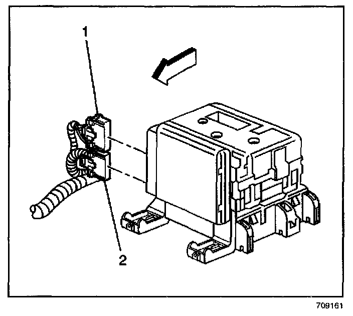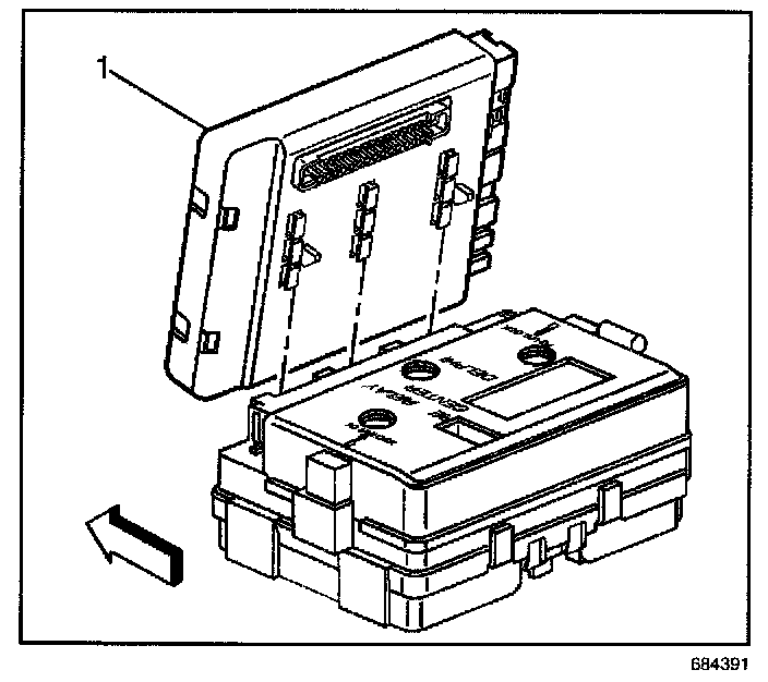 1. Index the slots on the BCM (1) to the rear electrical center.