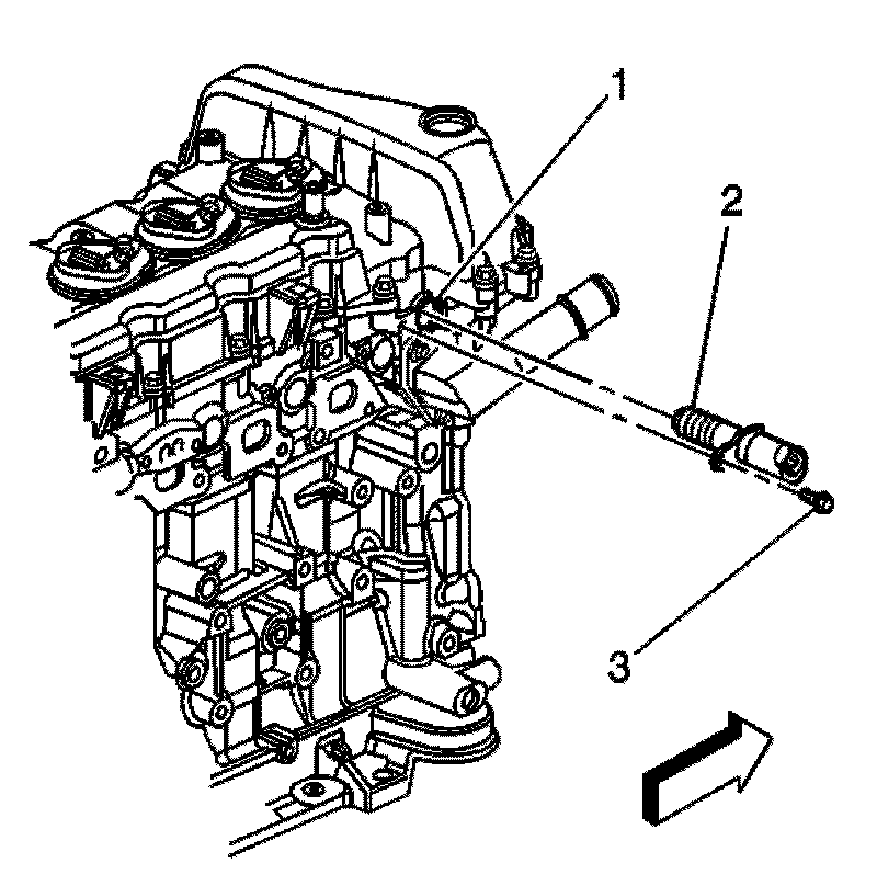 ^ Install the camshaft position actuator solenoid (2) and bolt (3).