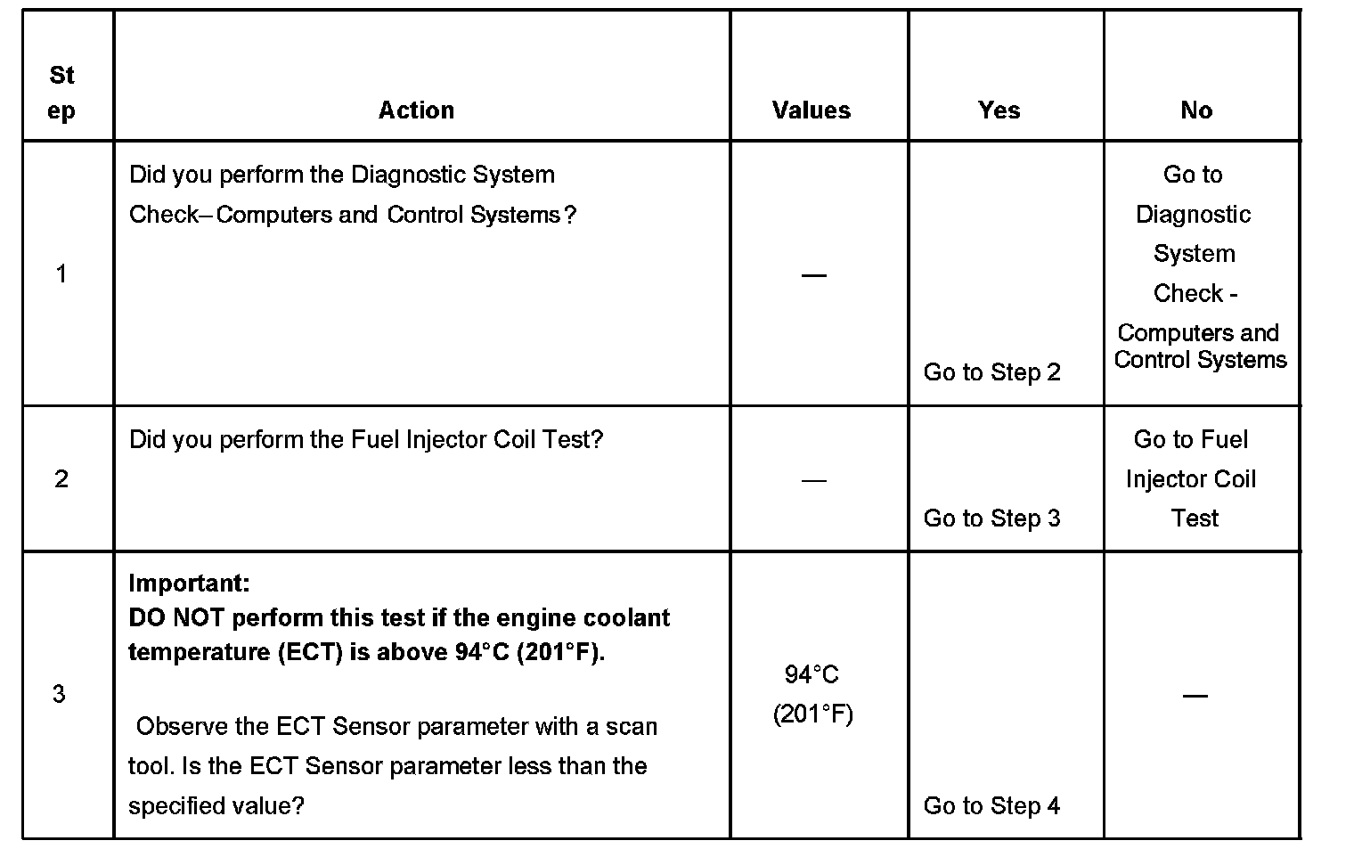 3. The engine coolant temperature (ECT) must be below the operating temperature in order to avoid irregular fuel pressure readings due to hot soak fuel boiling.