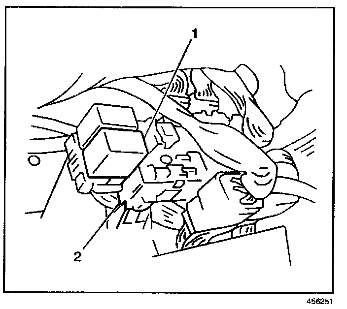 1. Remove the fuel pump relay (1) from the junction box (2).