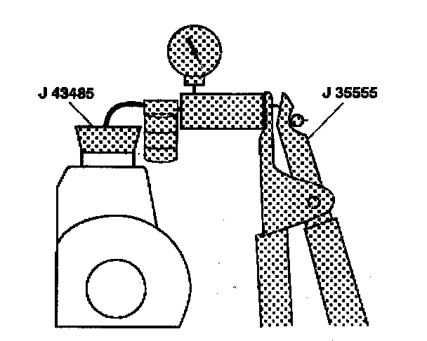 6. Place the J43485 on or in the pump reservoir filler neck.