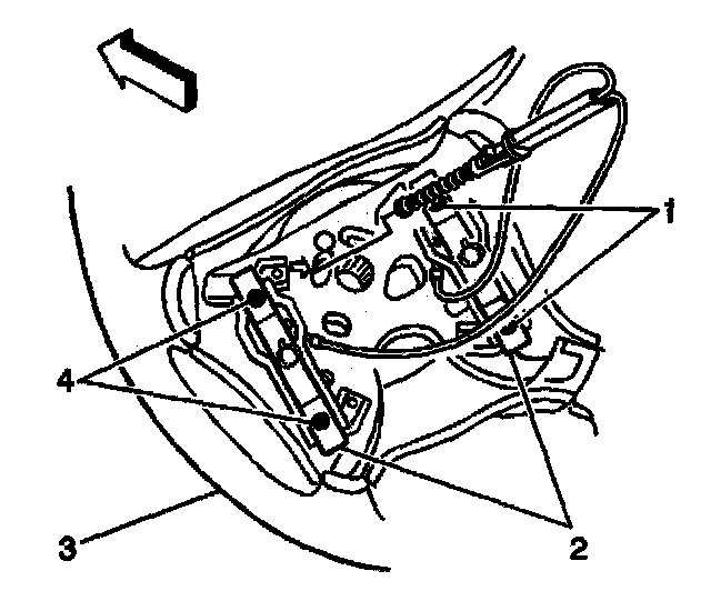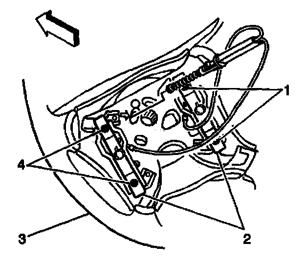 4. Disconnect the horn contact plate:(2) captured screws (1, 4) from the steering wheel (3).