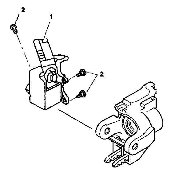 2. Secure the ignition lock cylinder case assembly (1) to the steering column using 3 pan head tapping screws (2).