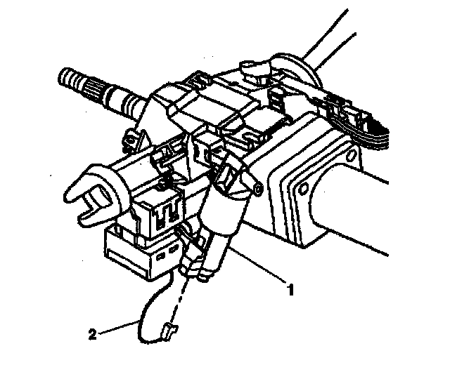 4. Pry the electric park lock (2) off of the ignition lock cylinder case assembly (1).