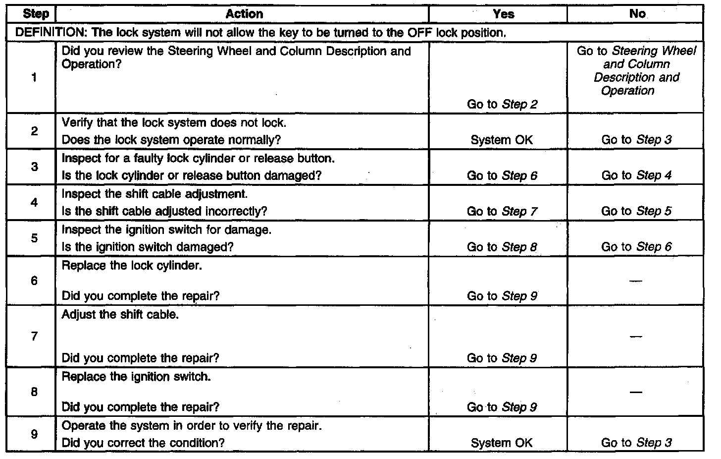 A/T Shift Lock, Lock System Does Not Lock