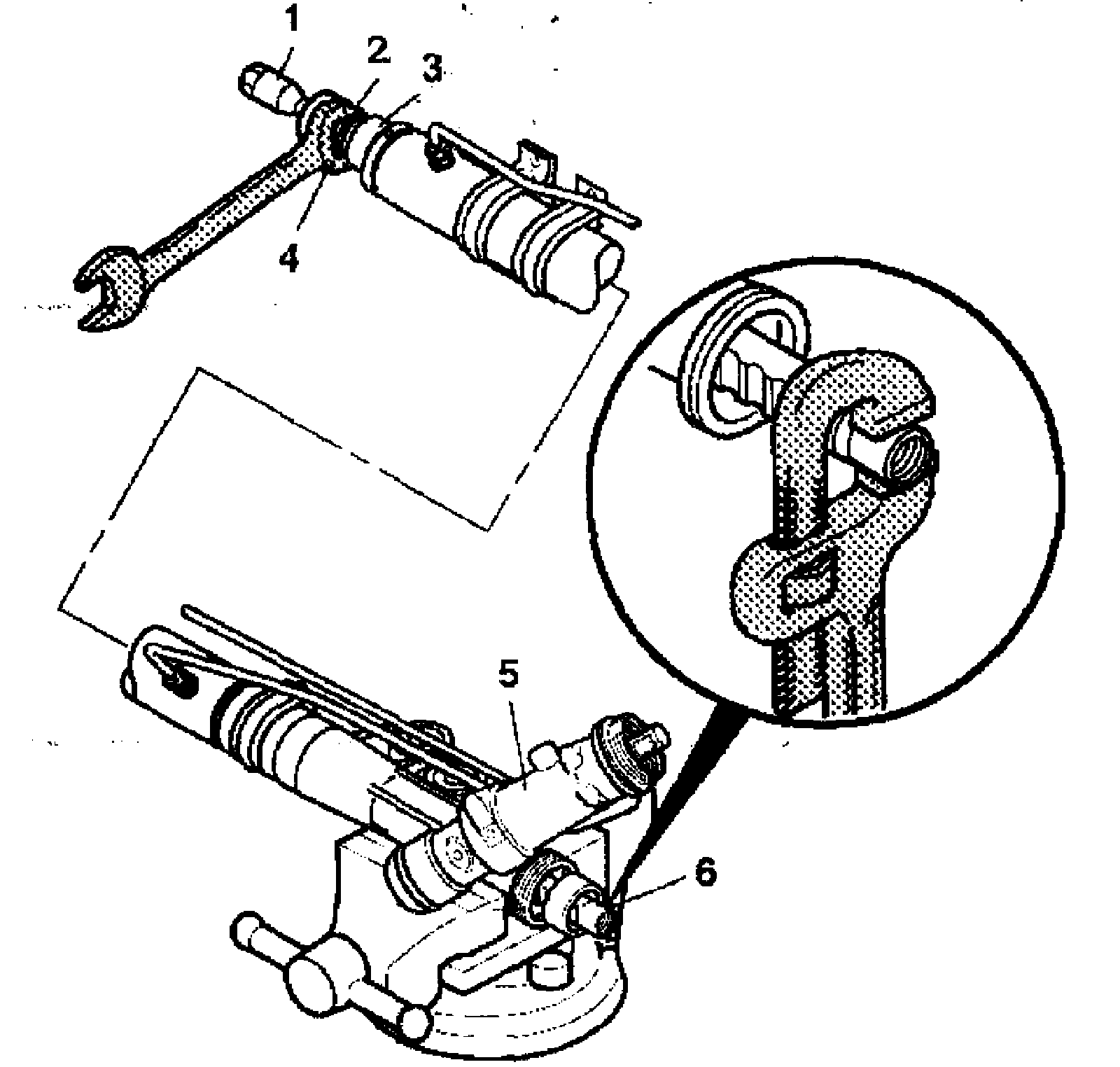 10. Maintain the pipe wrench on the opposite end of the rack (6).