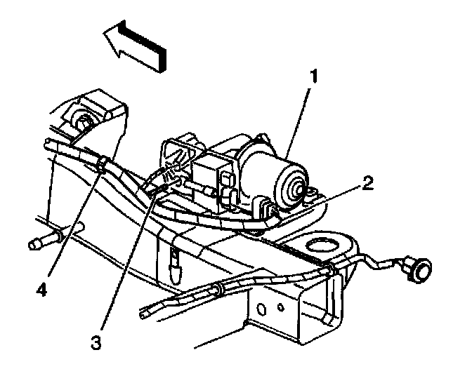 4. Disconnect the air inflator switch electrical connection, air supply lines, and air spring compressor vent hose from the air spring compressor.