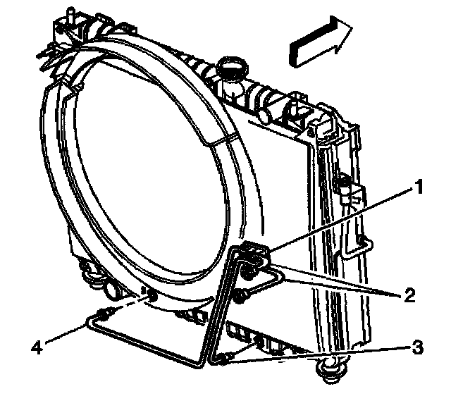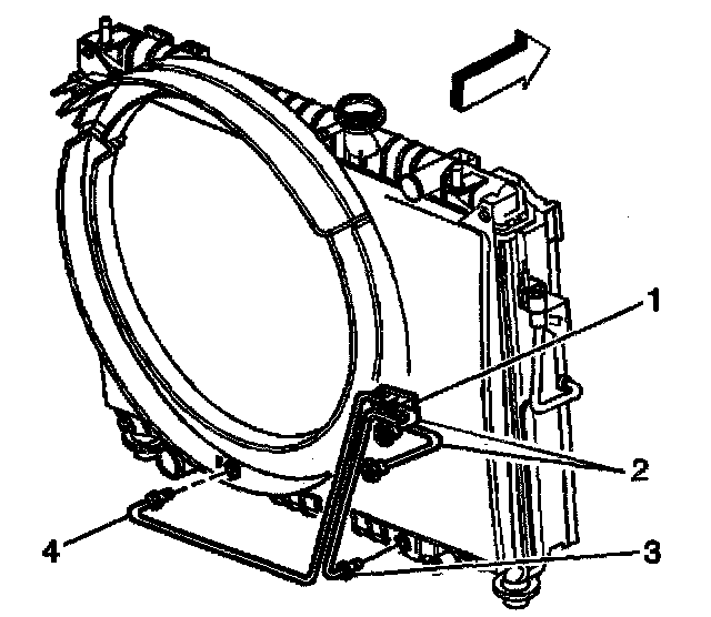 4. Remove the cooler lines (3, 4) from the radiator.