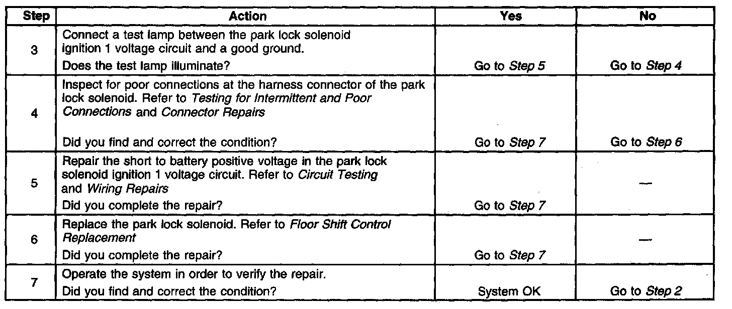 Park Lock Solenoid Inoperative