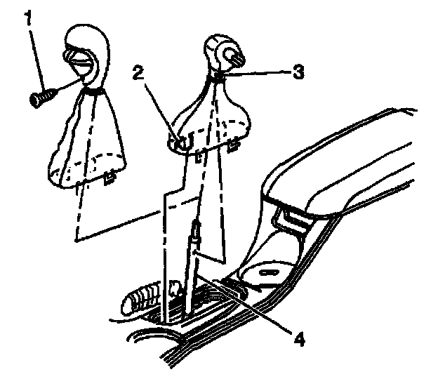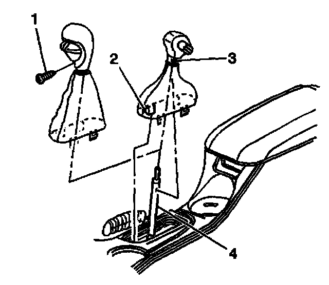 4. Pull up to remove the knob and boot assembly from the transmission control (4).