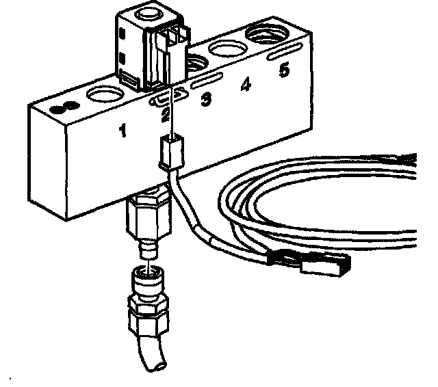 8. Observe the air flow through the solenoid. The flow will completely or nearly completely stop. Replace the solenoid if there continues to be an obvious air leak when the solenoid is energized.