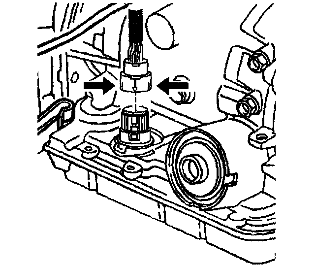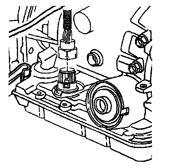 11. Using J 28458, release the pass-through electrical connector from the transmission case.