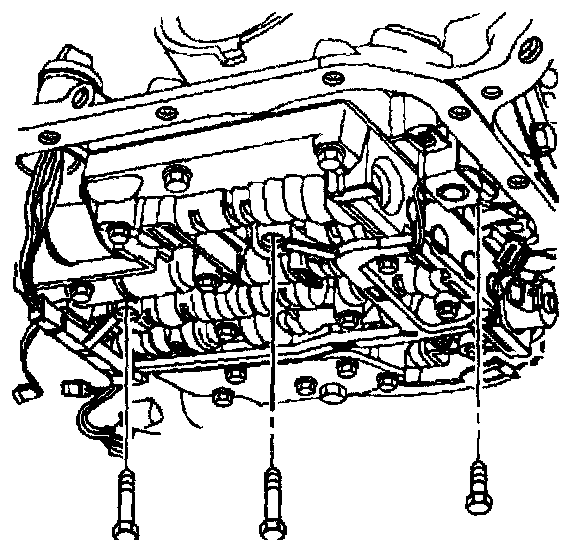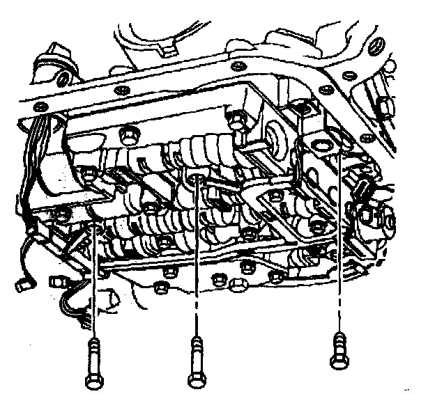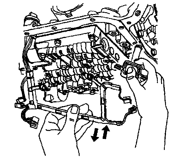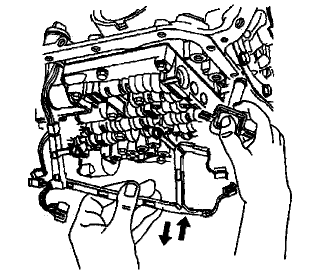 10. Remove the TCC solenoid retaining bolts and the valve body bolts which retain the internal wiring harness.