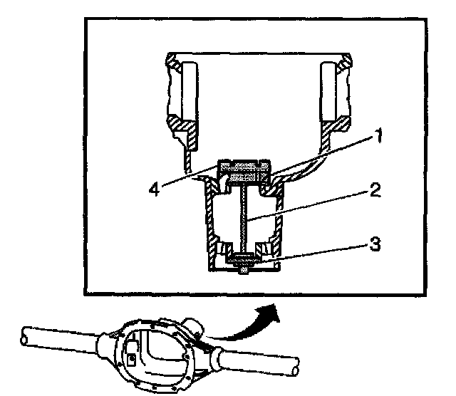 3. Assemble the J21777-35 (1), the J21777-43 (2), the J21777-42 (3), and the J45230, 8.0 inch axle, or the J21777-29, 8.6 inch axle (4) into the axle housing as shown.
