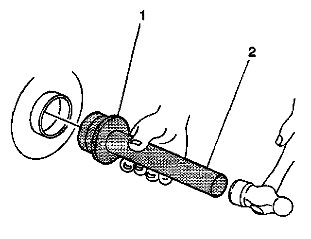 5. Remove the axle shaft seal and/or the bearing from the axle housing using the J44685 (1) and the J2619-01 (2).