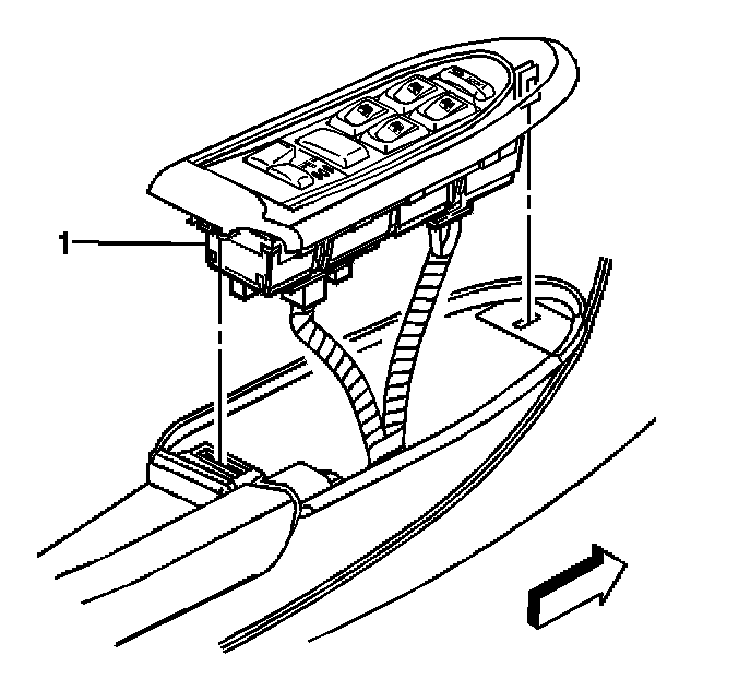 5. Install the switch panel to the door trim panel, ensuring the front and rear retaining clips are fully seated.