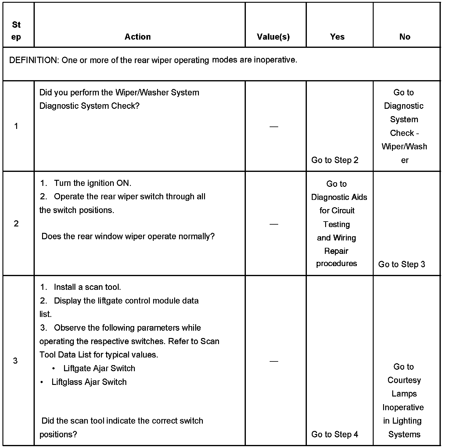 WIPER INOPERATIVE - REARTEST DESCRIPTION