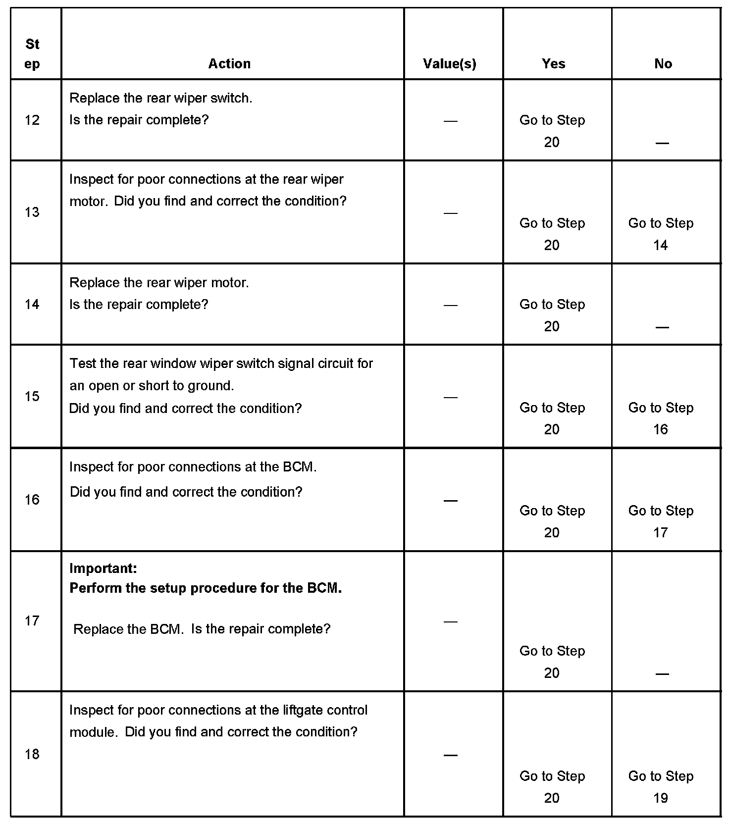5. This step determines if the liftgate control module is attempting to operate rear wiper motor in the requested operating mode.