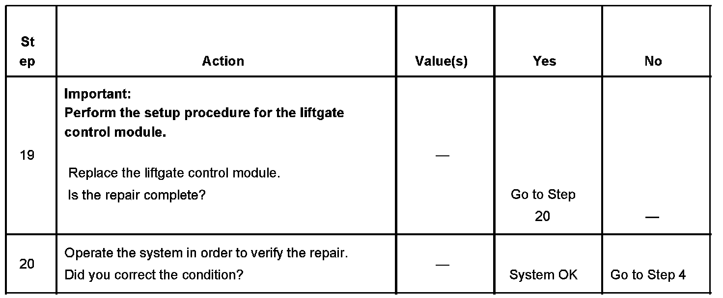 4. This step determines if the liftgate control module is receiving the correct switch position message from the body control module.