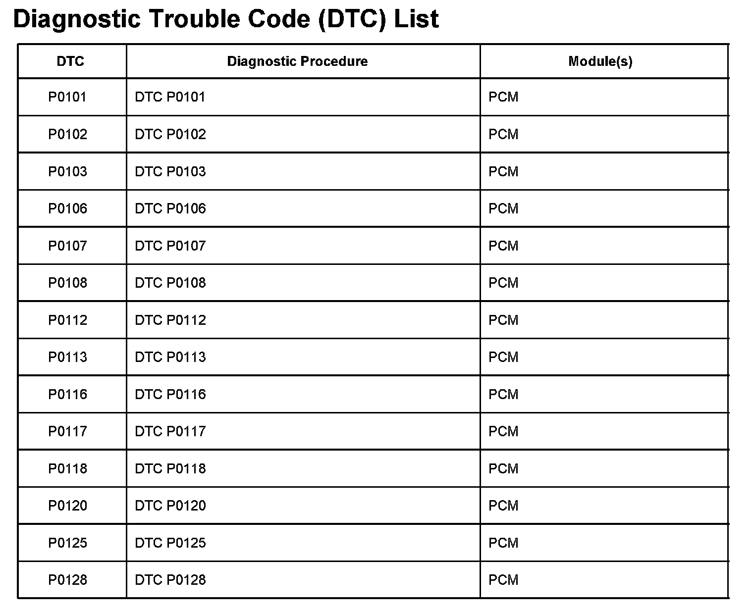 P0101-P0128: