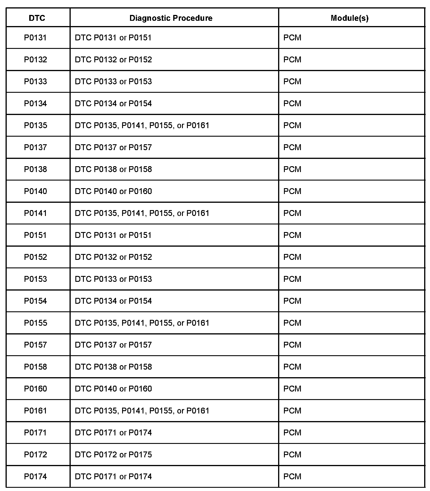 P0131-P0174: