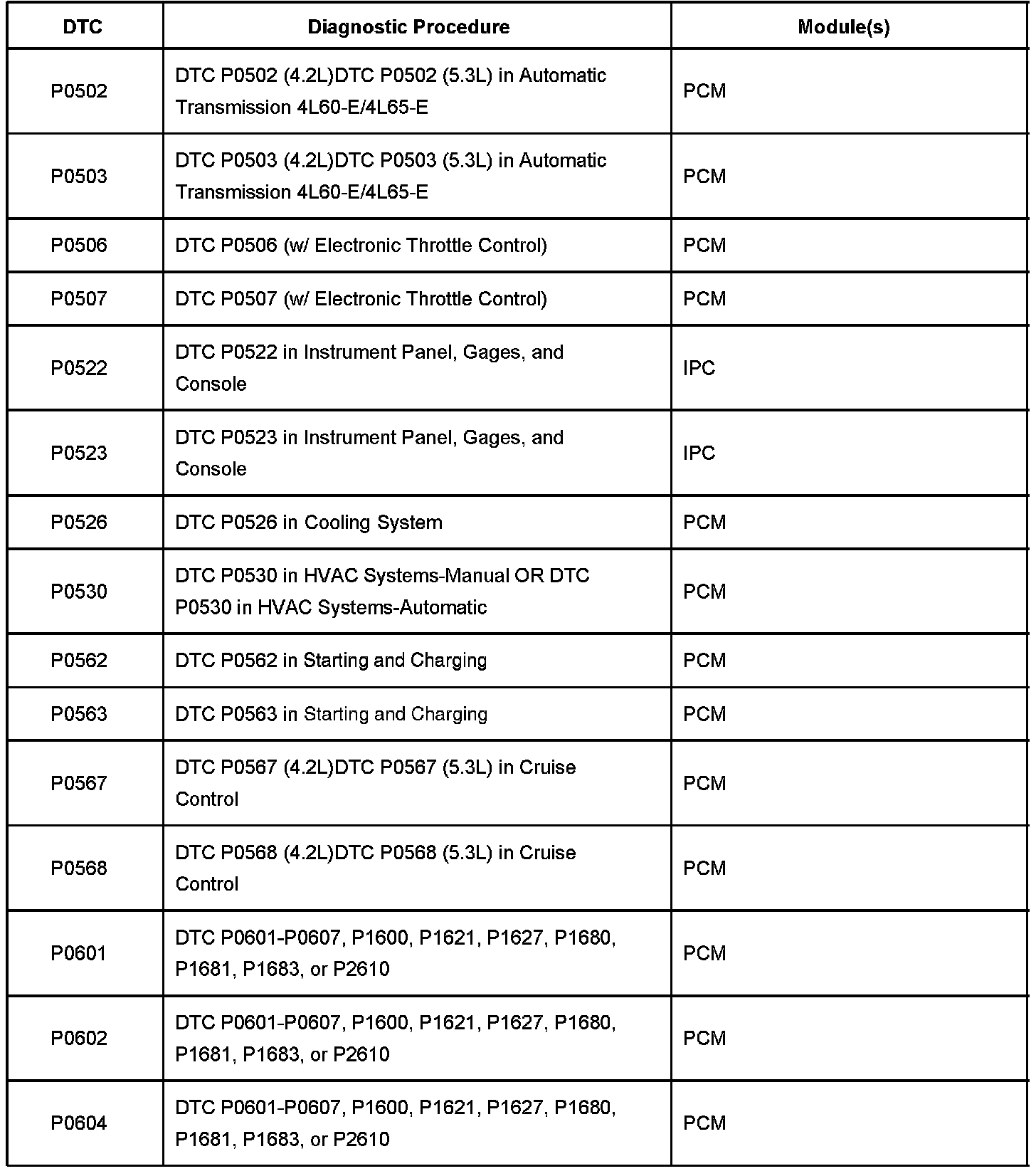 P0502-P0604: