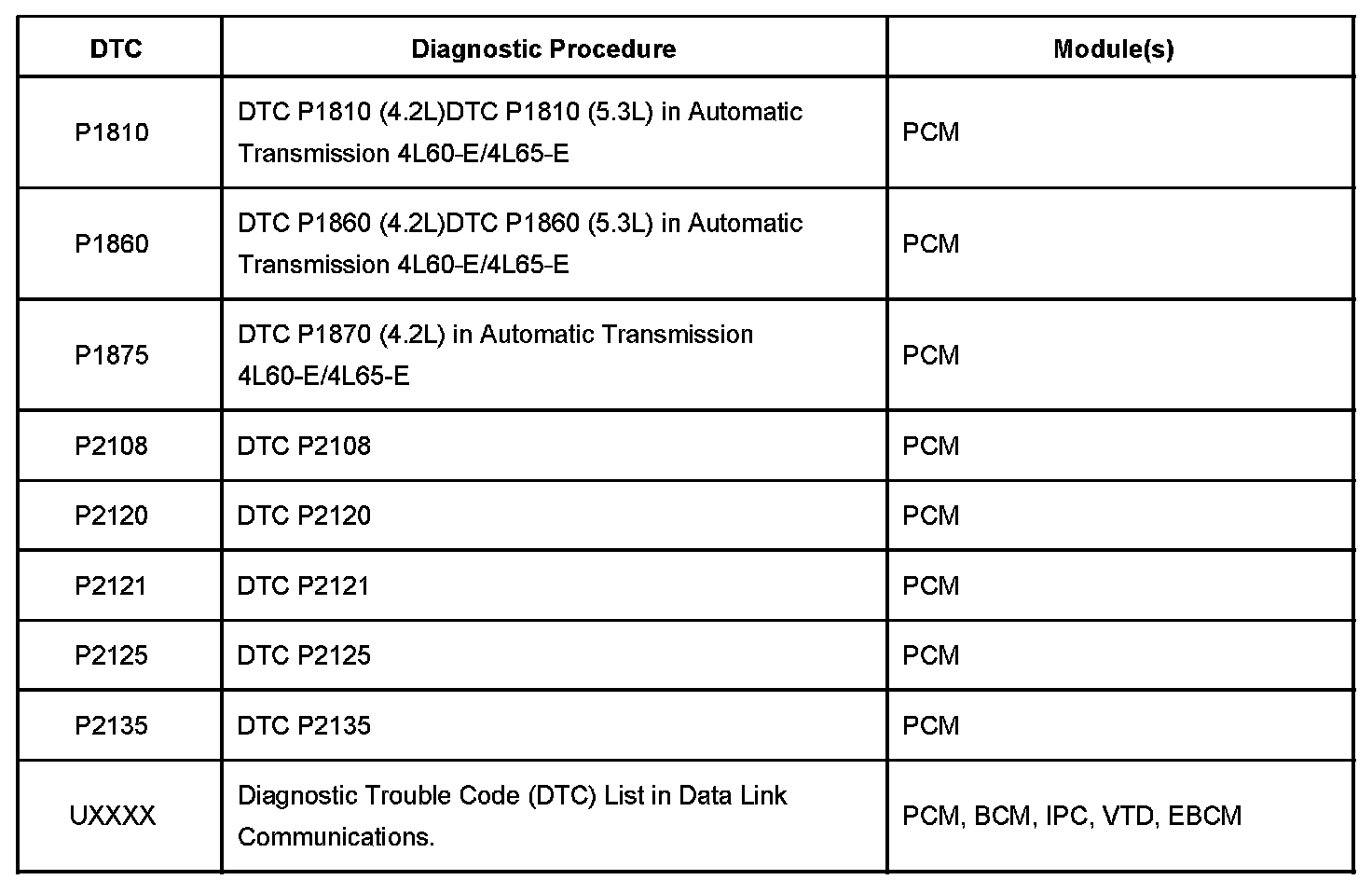 A L L Diagnostic Trouble Codes ( DTC )
