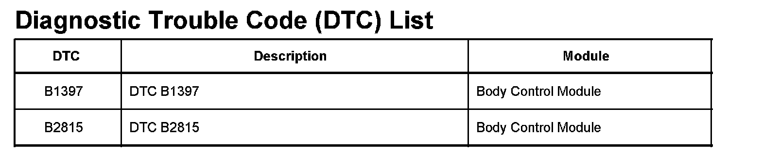 DTCs B1397 - B2815: