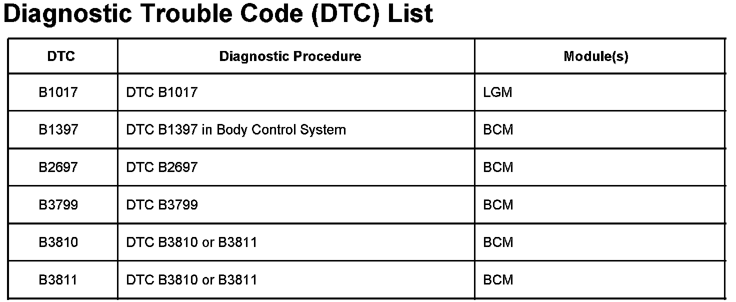 DTCs B1017 - B3811: