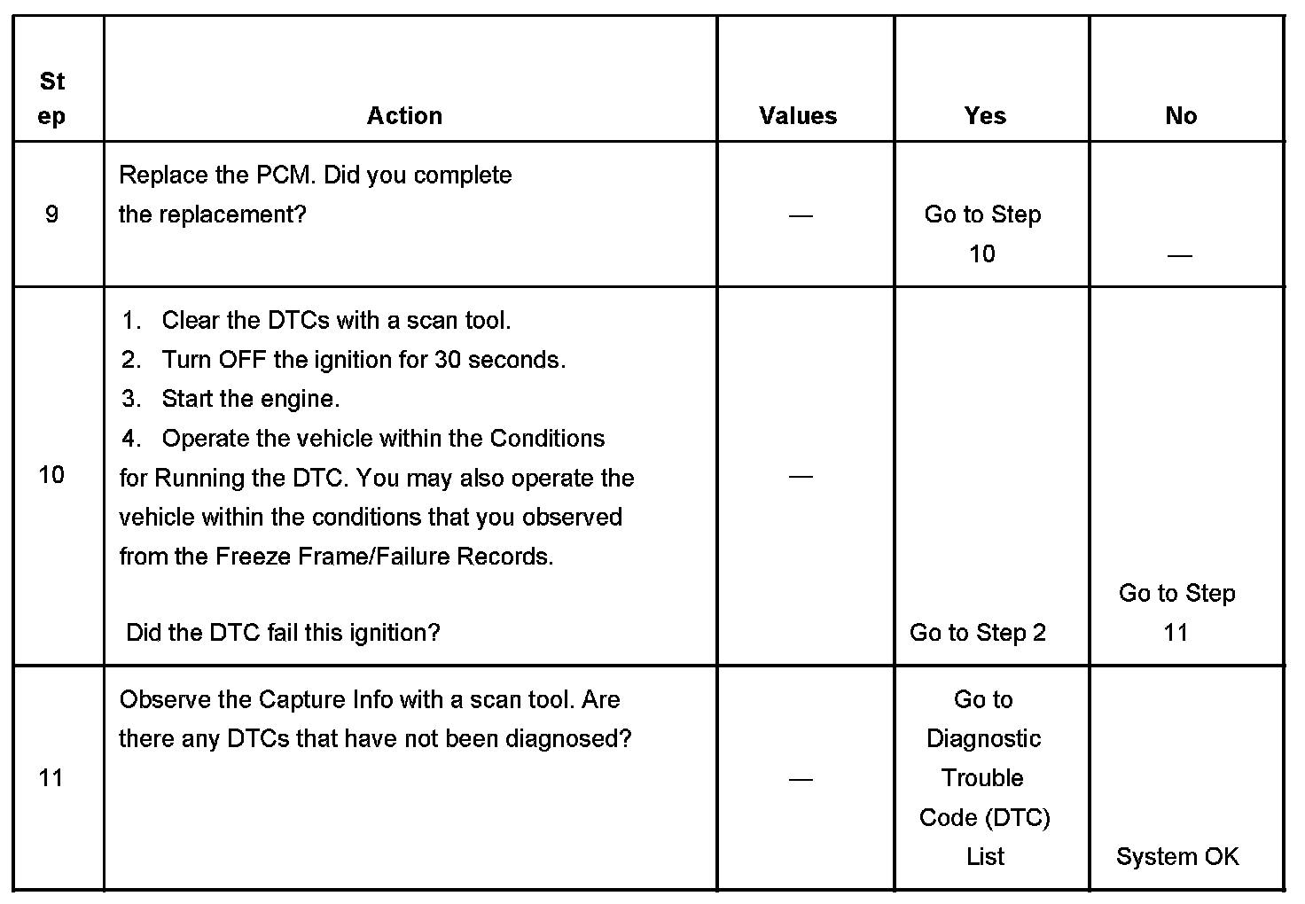 - A current DTC, Last Test Failed, clears when the diagnostic runs and passes.