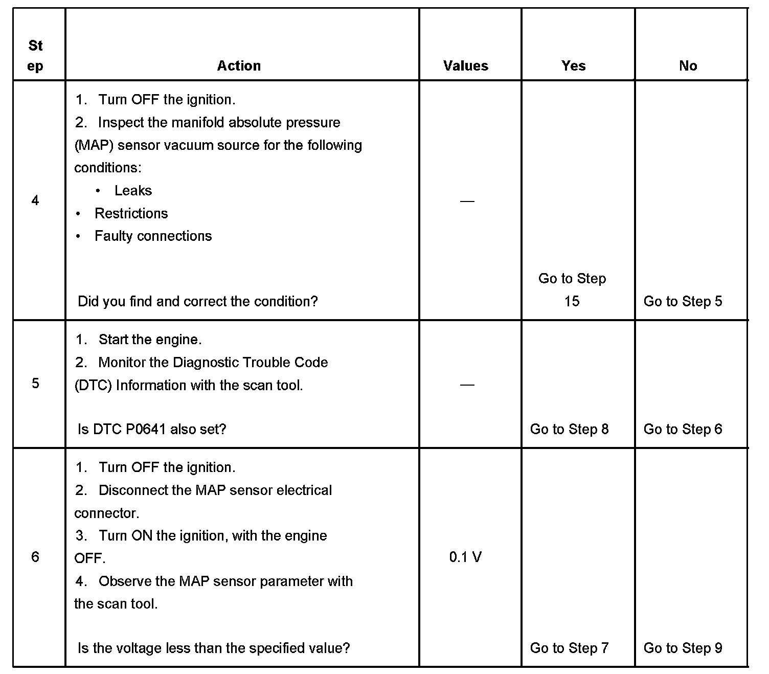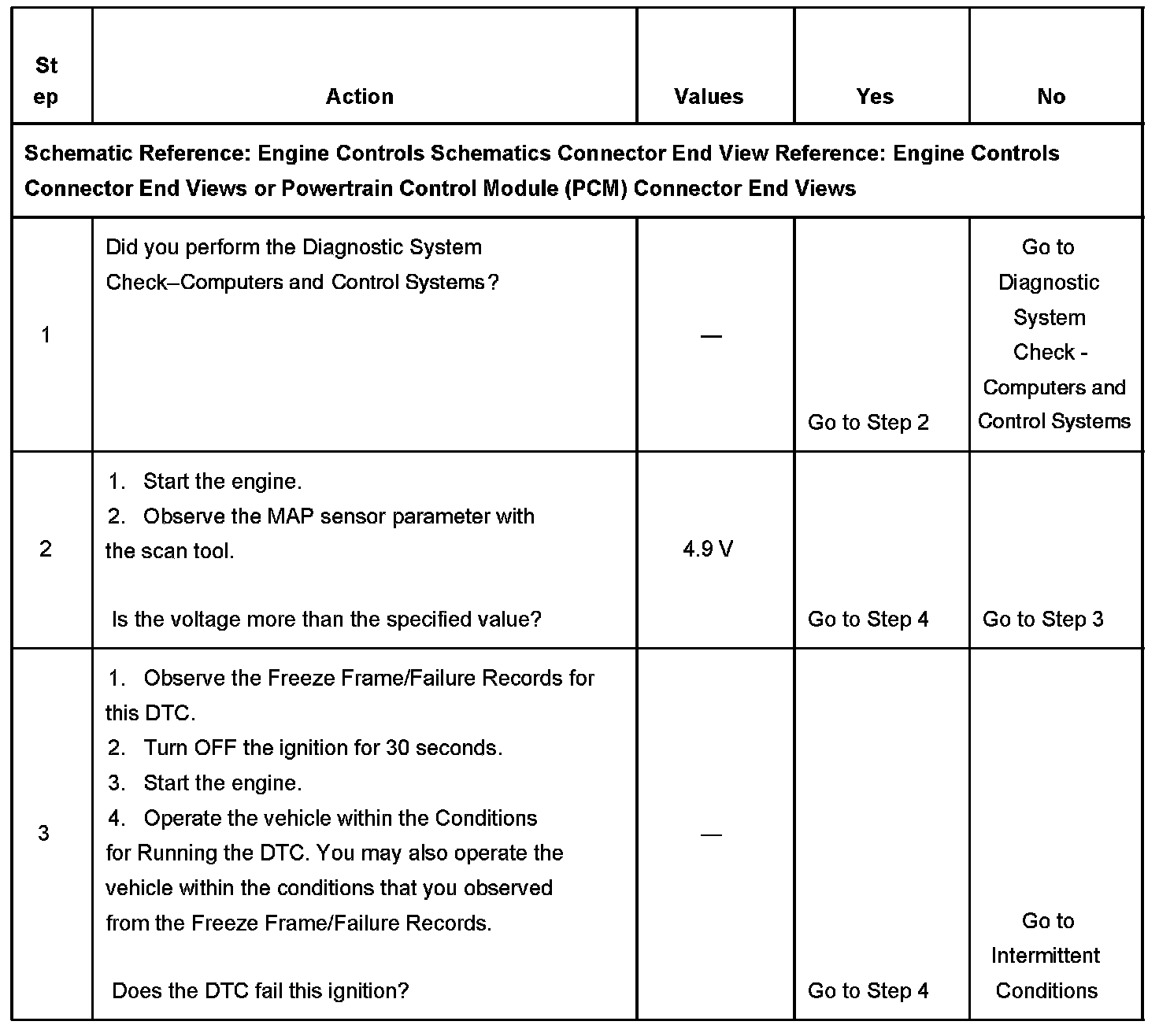 The PCM detects that the MAP sensor voltage is more than 4.9 volts for more than 4 seconds.