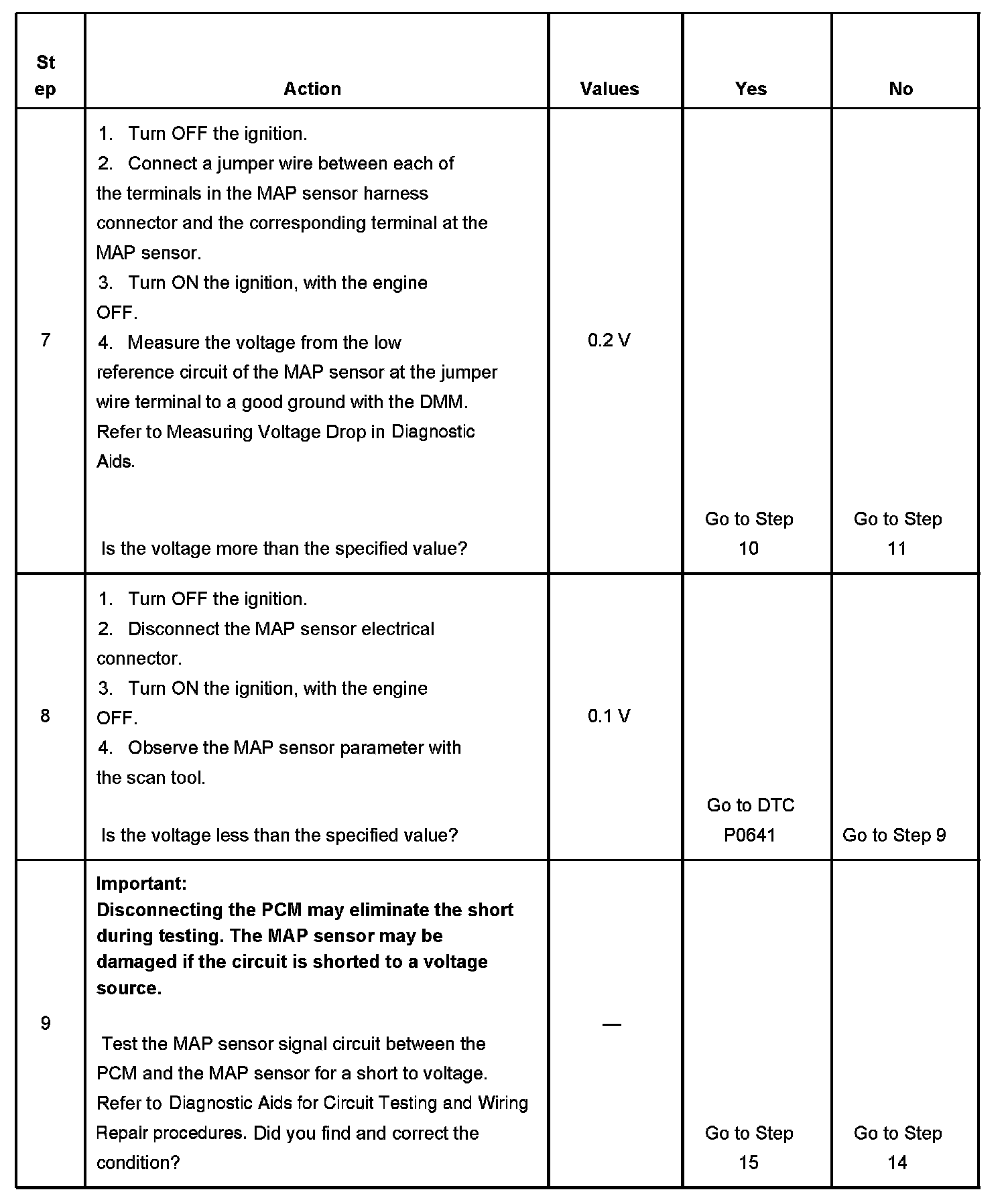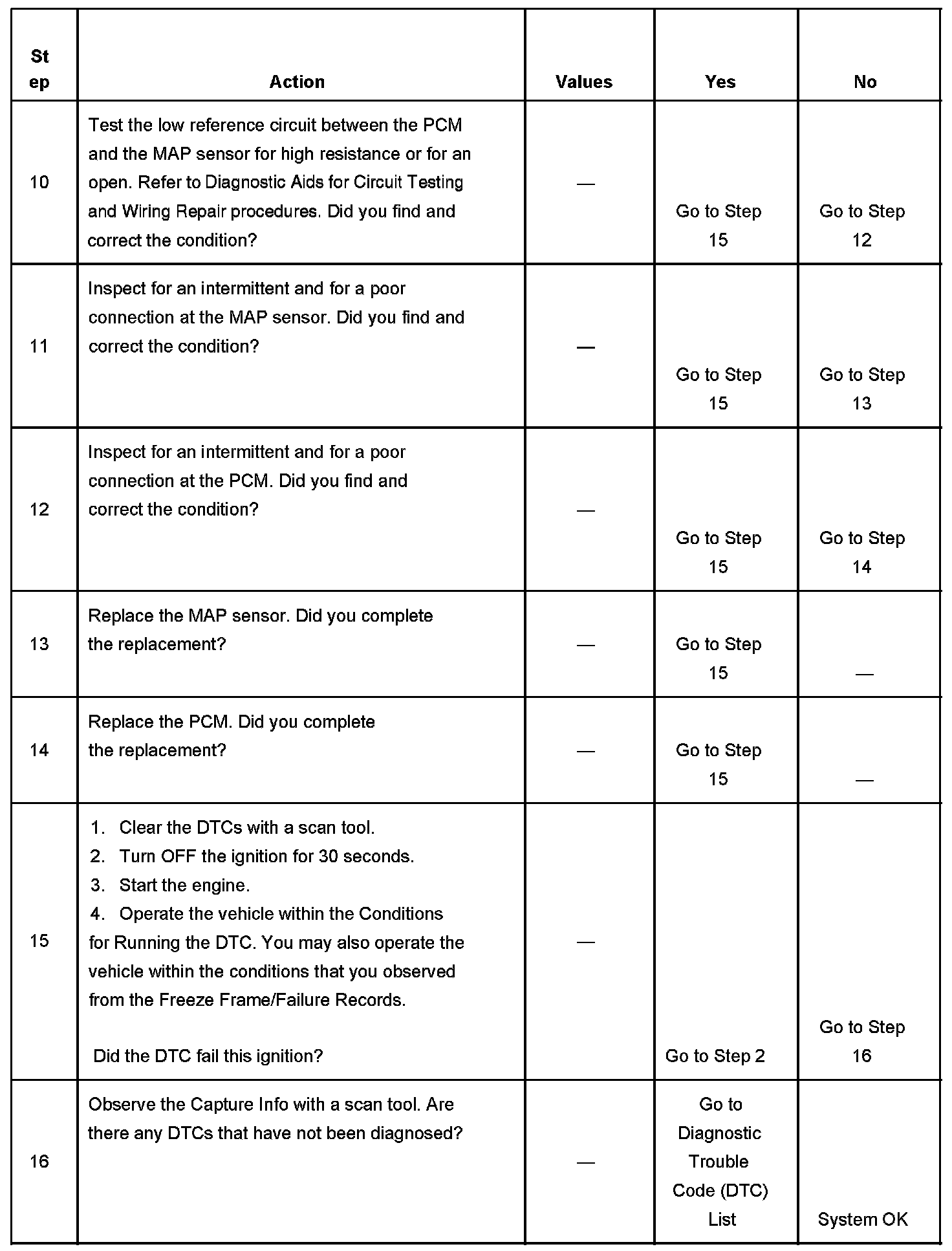 The number below refers to the step number on the diagnostic table.