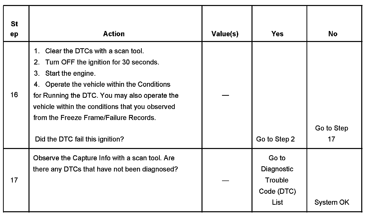- A current DTC, Last Test Failed, clears when the diagnostic runs and passes.