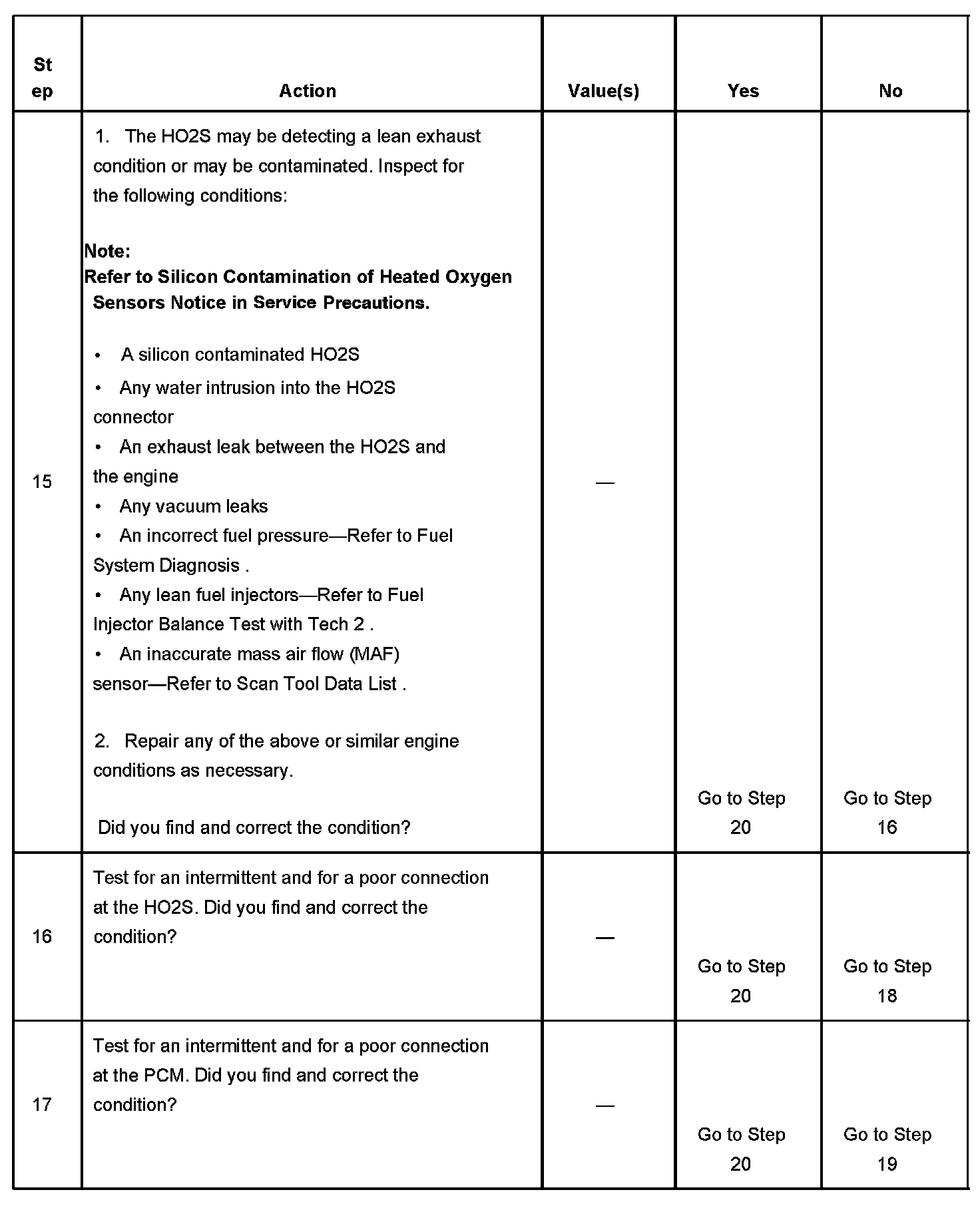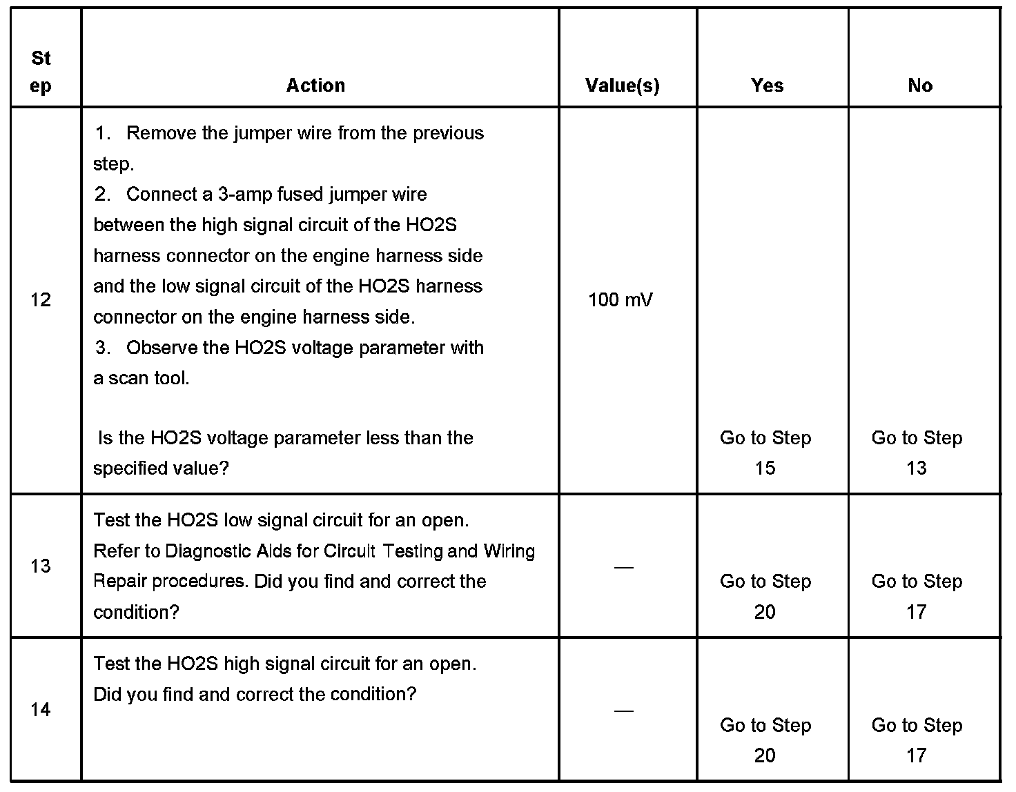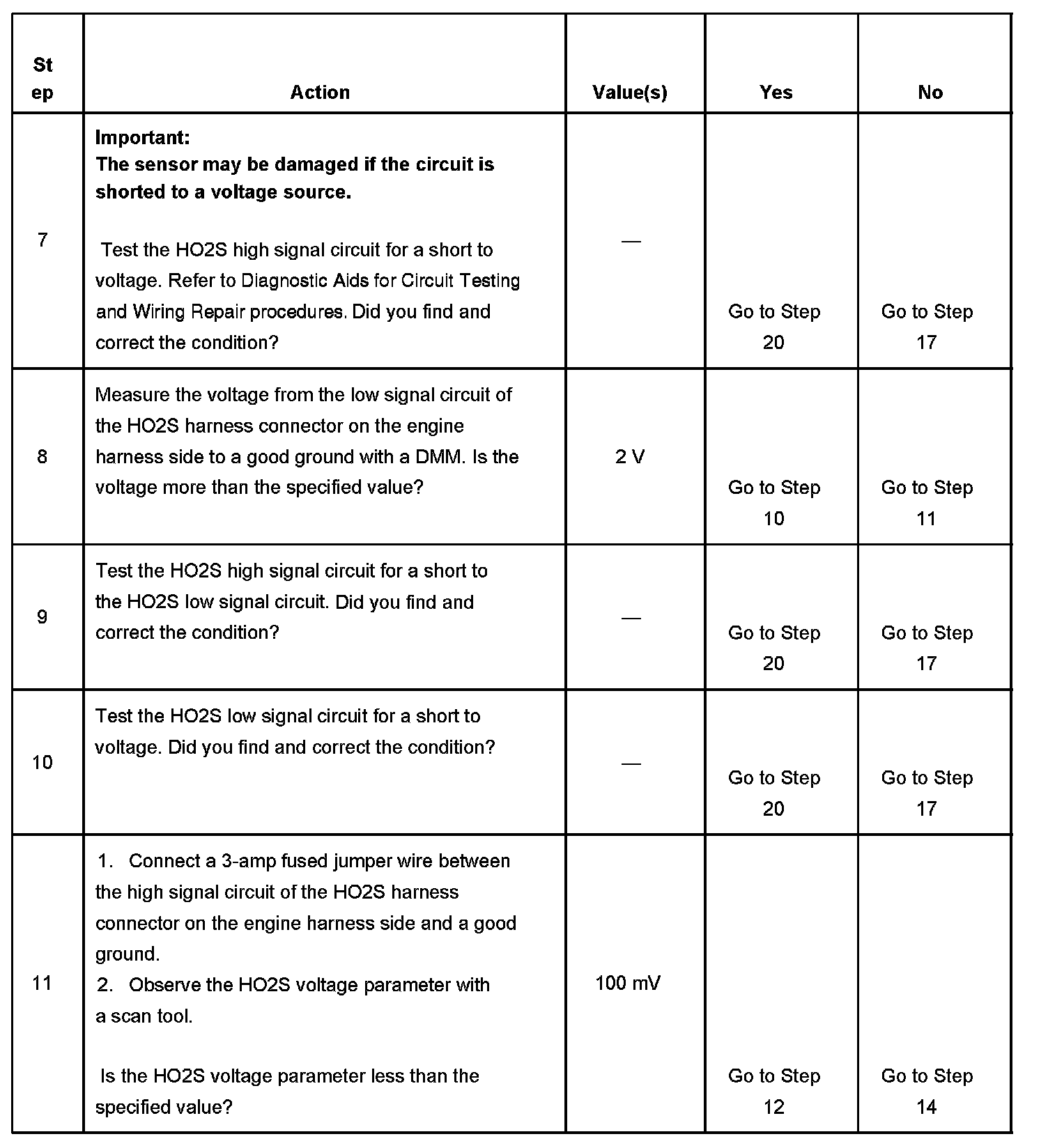 2. If the voltage does not change more that the specified value, the condition is present.