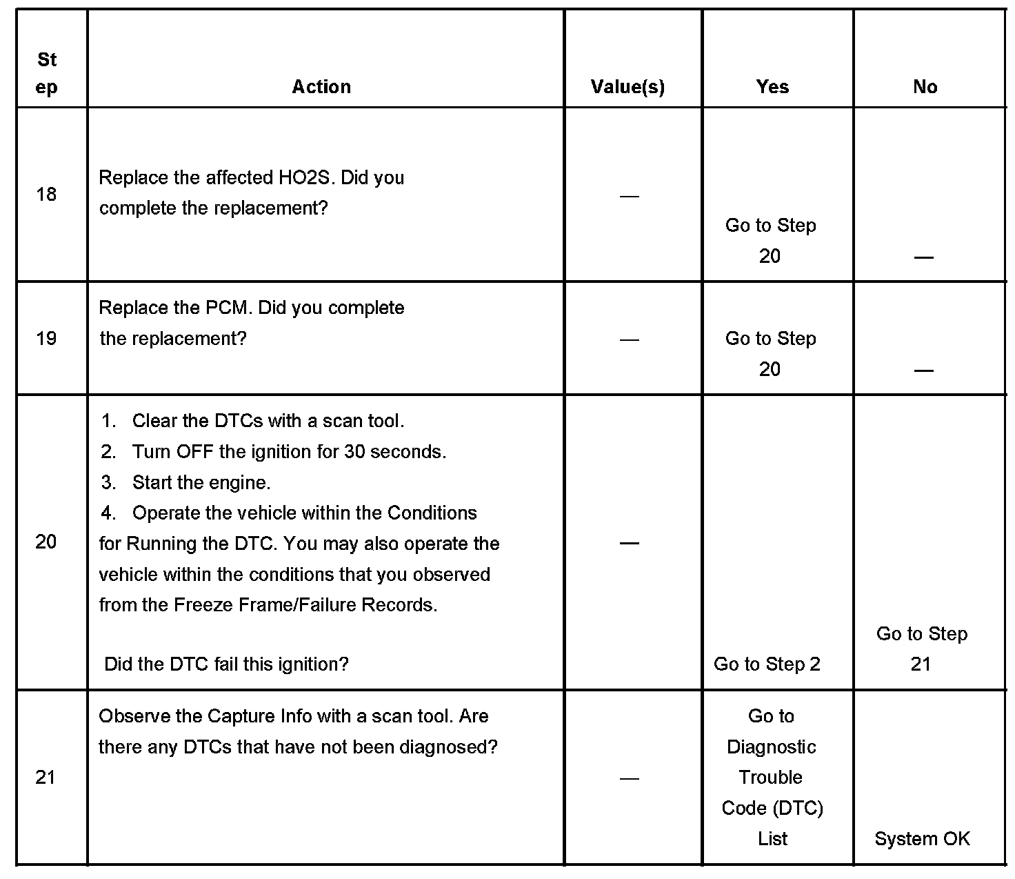 - A current DTC, Last Test Failed, clears when the diagnostic runs and passes.