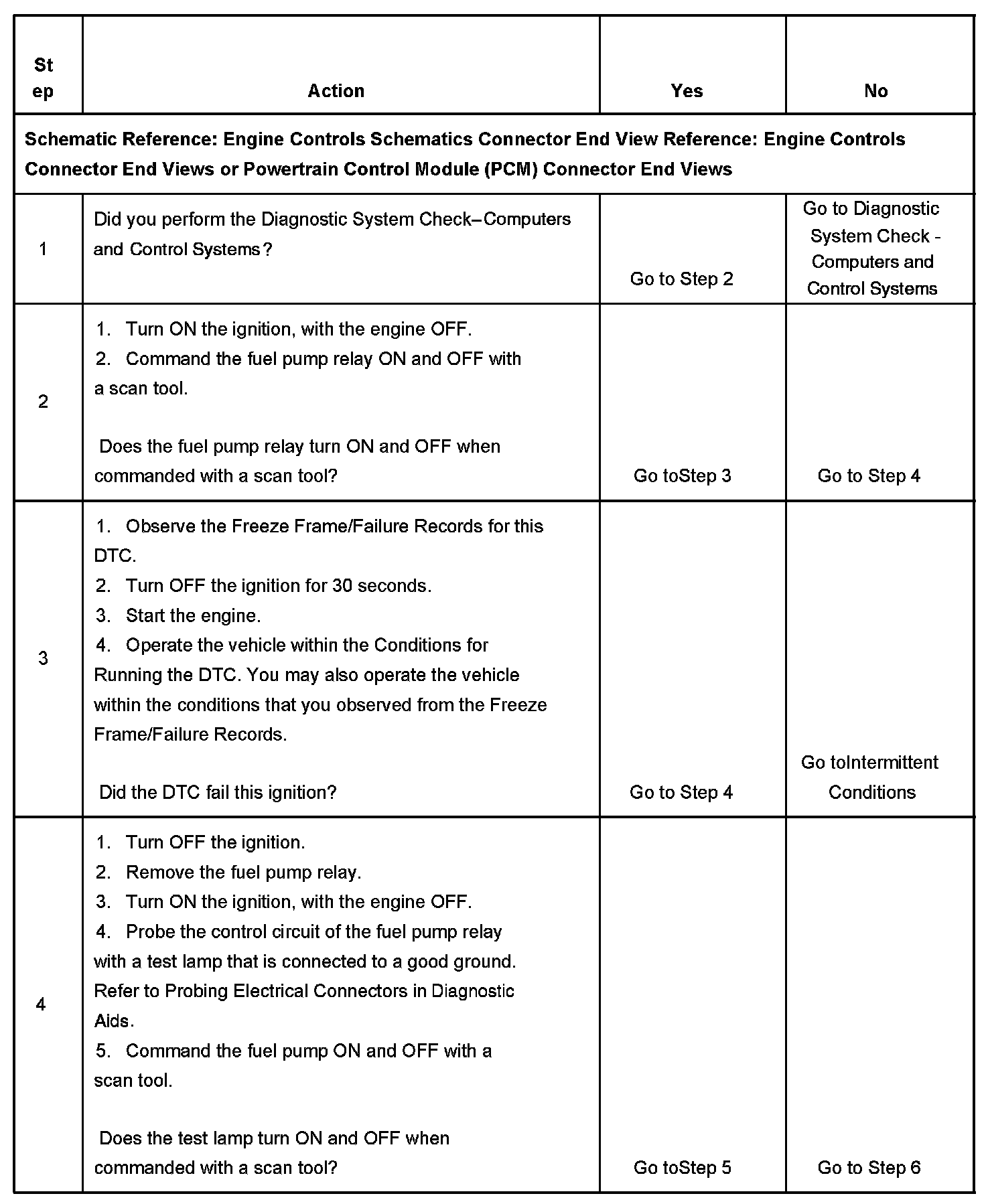 6. This step tests if the voltage is constantly being applied to the control circuit of the fuel pump relay.