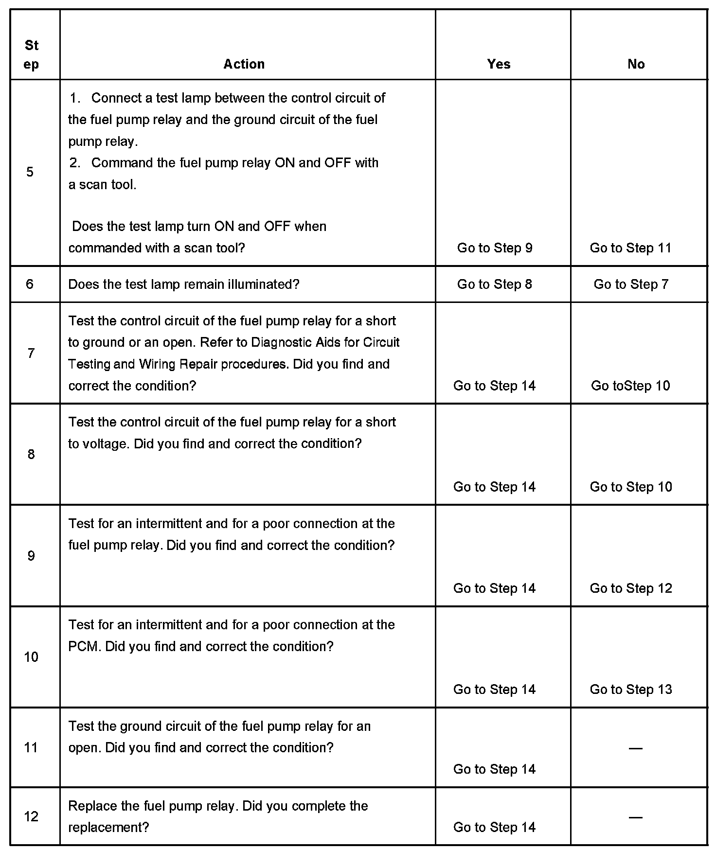 5. This step tests for an open in the ground circuit to the fuel pump relay.