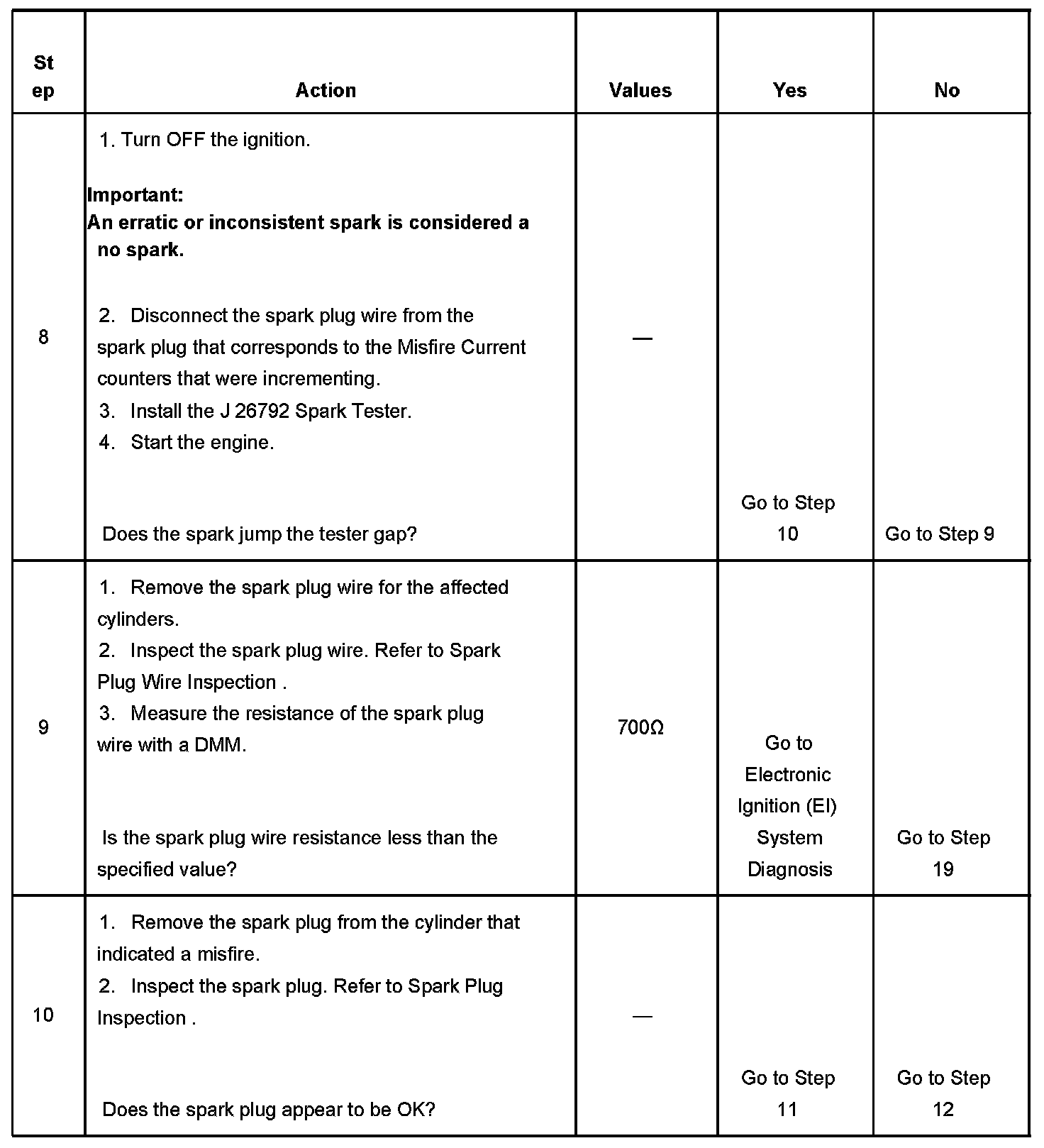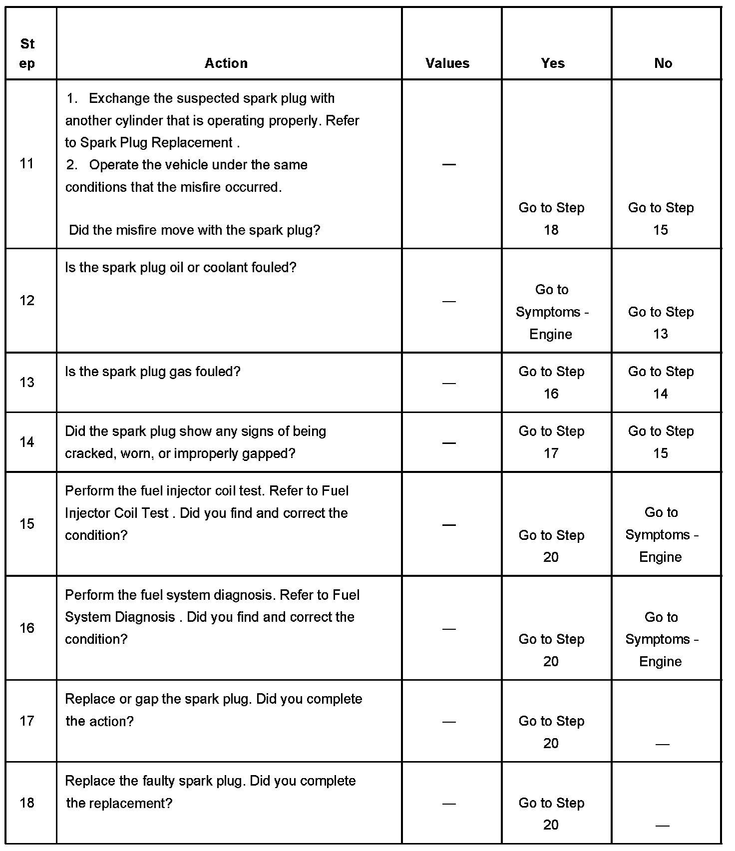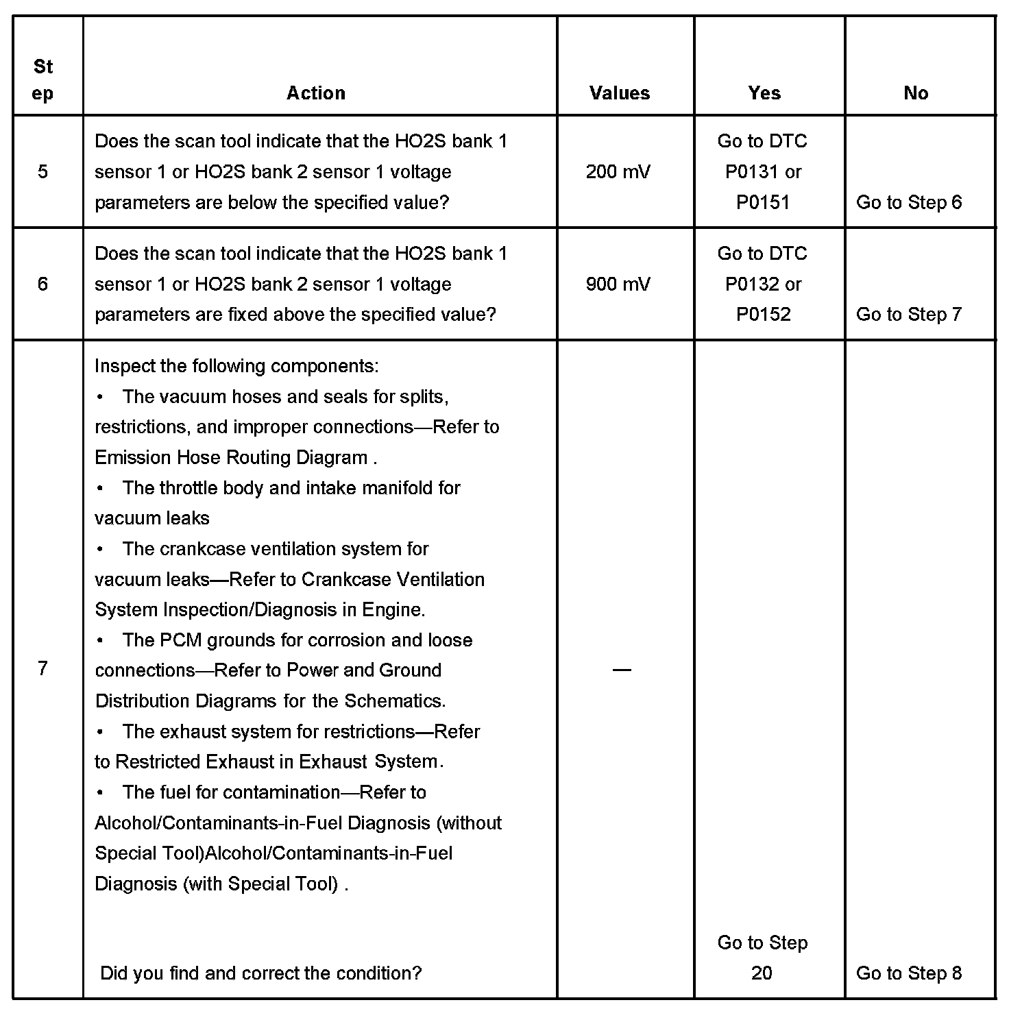 The number below refers to the step number on the diagnostic table.