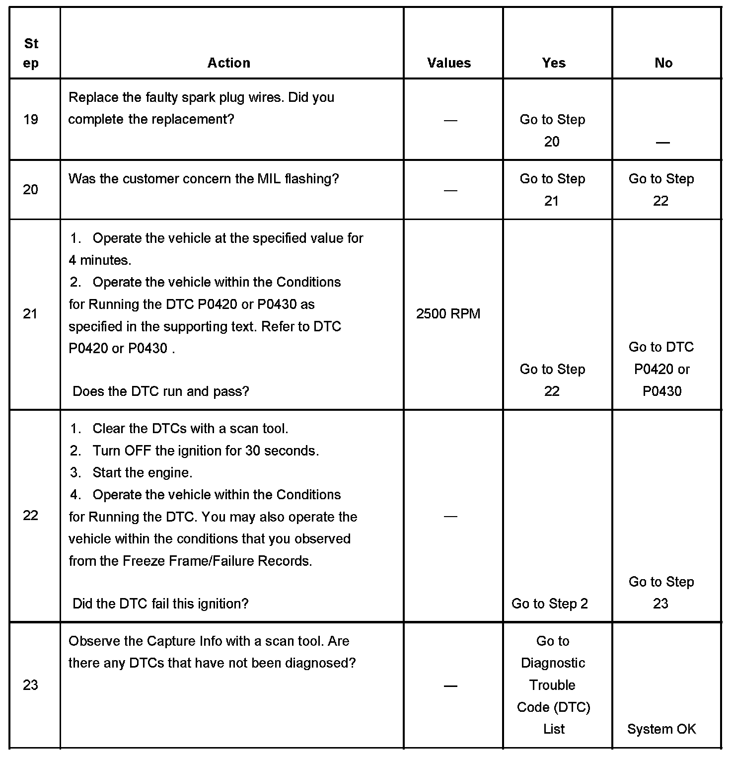 - DTC P0101, P0102, P0103, P0106, P0107, P0108, P0116, P0117, P0118, P0125, P0128, P0220, P0315, P0335, P0336, P0341, P0342, P0343, P0502, P0503, P1114, P1115, P1120, P1258 are not set.