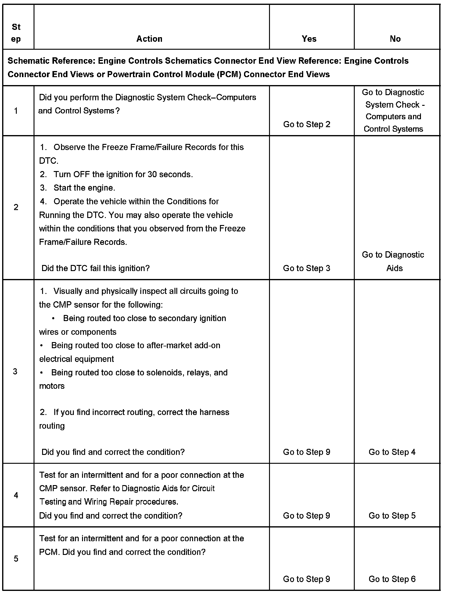 CIRCUIT DESCRIPTIONThe camshaft position (CMP) sensor works in conjunction with a 1 X reluctor wheel on the camshaft. The powertrain control module (PCM) provides a 12 volt reference to the CMP sensor as well as a low reference and a signal circuit.